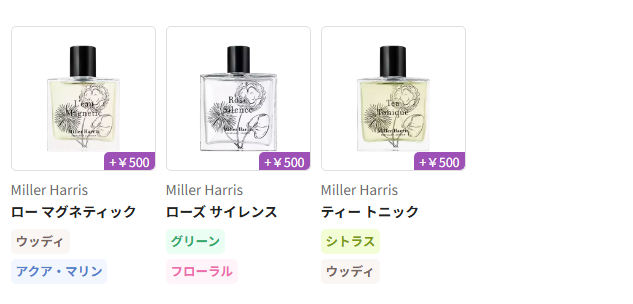 上記のように今回1位で紹介した『ティートニック』はもちろん、ほかの香水もラインナップされています。
